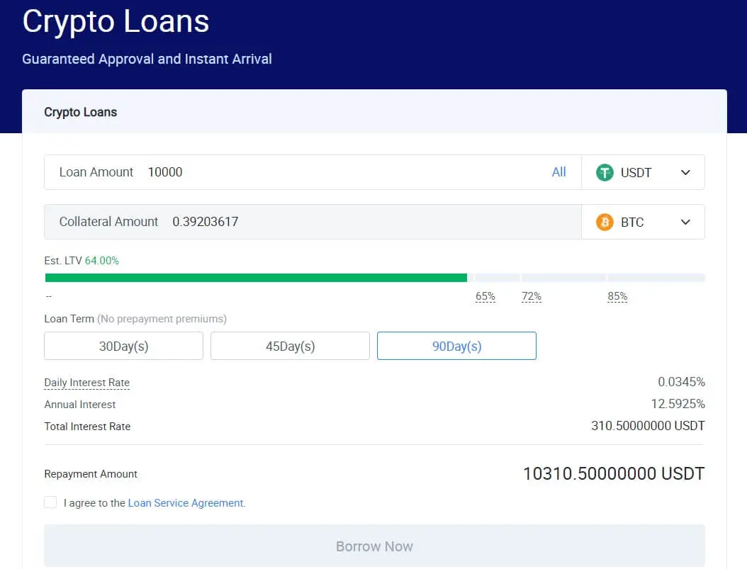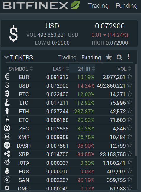 A plataforma de negociação de margem P2P da Bitfinex permite que os usuários peçam emprestado e negociem com uma alavancagem de até 3,3x. Os termos de empréstimo podem ser definidos manualmente pelo usuário ou automaticamente pela Bitfinex.